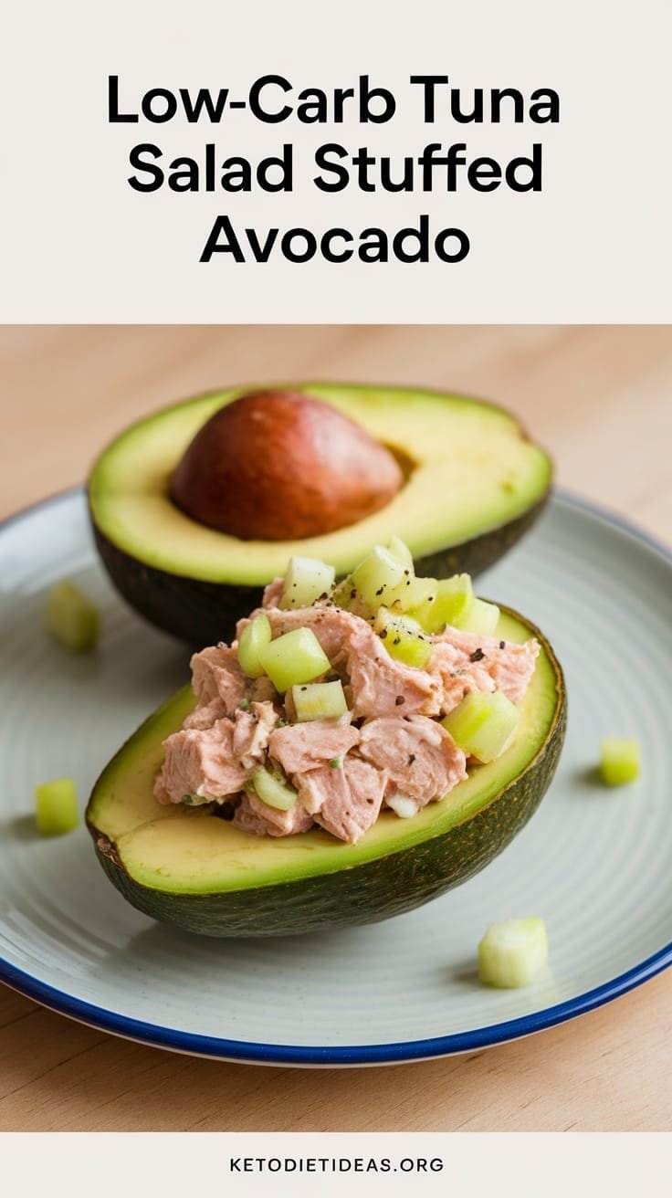 Looking for a tasty and simple snack? Try this low-carb tuna salad stuffed avocado! It combines creamy avocado with protein-packed tuna, making it a satisfying choice for anyone on a keto diet. The freshness of the celery adds a nice crunch, while the avocado brings a rich, buttery flavor to each bite.